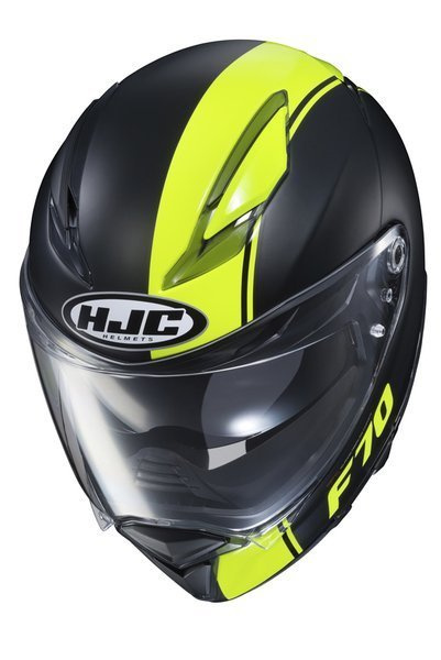 - Kask motocyklowy sportowo-turystyczny HJC F70 to połączenie zaawansowanej myśli technicznej i dobrych materiałów w przystępnej cenie. Posiada aerodynamiczną skorupę z włókna szklanego, co czyni go lekkim, choć jednocześnie sztywnym. Zintegrowana blenda i szeroki kąt widzenia dzięki zakrzywionej szybie sprawia, że kask posiada ciekawy, agresywny wygląd.