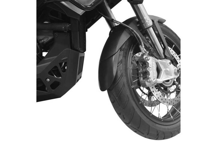 Przedłużenie przedniego błotnika zapewnia ochronę dolnej części motocykla - kolektorów układu wydechowego, owiewek i innych elementów - przed zabrudzeniami z przedniej opony.