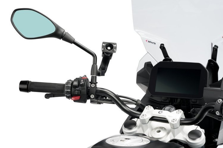 Mocowany pod lusterko uchwyt do GPS/smartfona lub innego urządzenia.