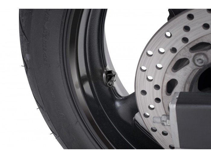 Zaworki 90 stopni umożliwiają wygodne pompowanie oraz sprawdzanie ciśnienia w oponach motocyklowych.