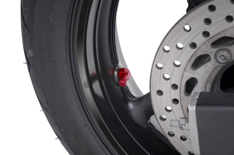Zaworki 90 stopni umożliwiają wygodne pompowanie oraz sprawdzanie ciśnienia w oponach motocyklowych.