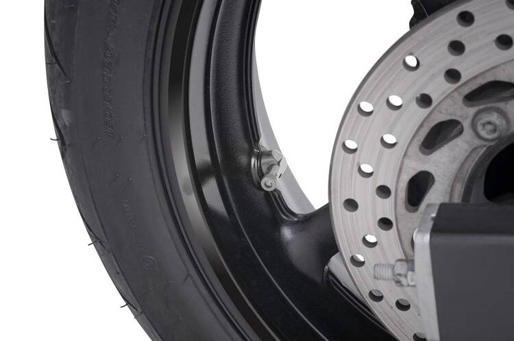 Zaworki 90 stopni umożliwiają wygodne pompowanie oraz sprawdzanie ciśnienia w oponach motocyklowych.