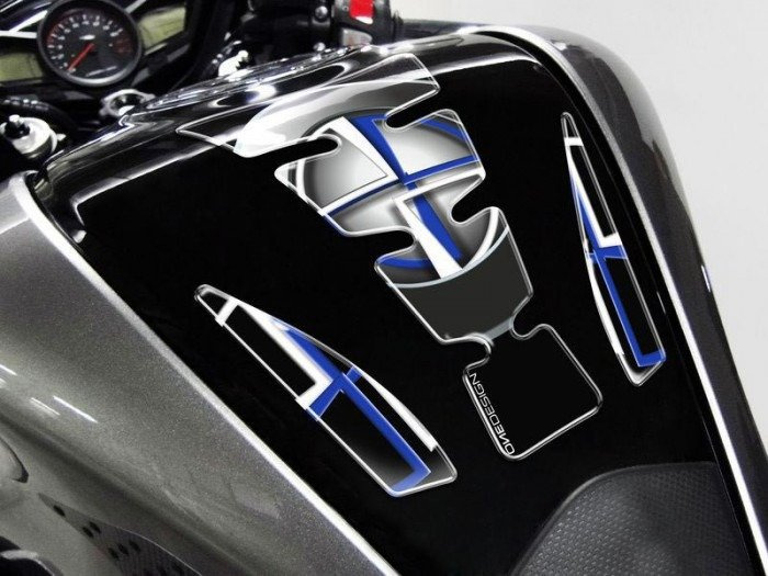 Tankpady PUIG Wings składają się z trzech elementów - głównego tankpada oraz także dwóch dodatkowych części, do przyklejenia bardziej po bokach baku.