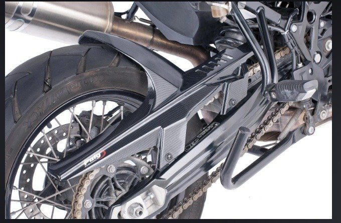 Zintegrowana osłona łańcucha. W zestawie komplet mocowań do danego modelu motocykla.