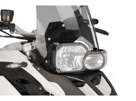 Zabezpiecza fabryczną lampę motocykla na szutrach i bezdrożach.