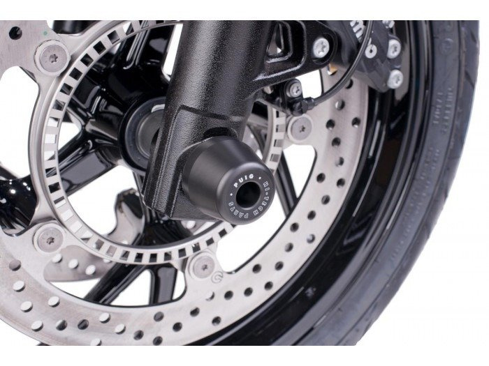 Protektory osi kół przednich - dodatkowe zabezpieczenie motocykla w razie nieprzewidzianych zdarzeń.