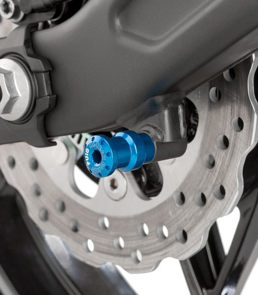 Przed zakupem zweryfikuj, iż Twój motocykl posiada w wahaczu odpowiednie otwory z gwintem (rozmiar jest przypisany do marki pojazdu). Posiada je większość nowszych motocykli sportowych i turystycznych.