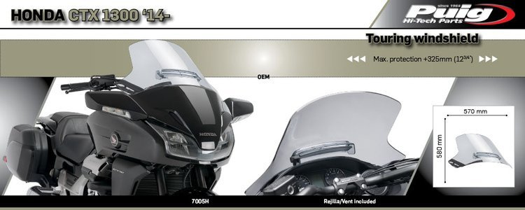 Dodatkowe przedłużenie w turystycznej szybie PUIG zapewnia doskonałą ochronę przed wiatrem nawet przy długich podróżach.