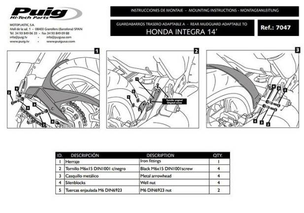 Zintegrowana osłona łańcucha. W zestawie komplet mocowań do danego modelu motocykla.