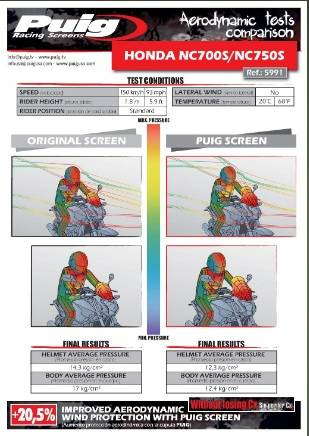 Poprawia ochronę przed wiatrem na motocyklu o 20,5% - bez straty aerodynamiki (współczynnika cX), poprzez zmniejszenie siły działającej na kask z 14,3 kg/cm2 do 12,3 kg/cm2 oraz siły działającej na ciało kierowcy z 17 kg/cm2 do 12,4 kg/cm2.