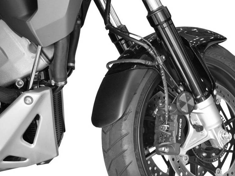 Przedłużenie przedniego błotnika zapewnia ochronę dolnej części motocykla - kolektorów układu wydechowego, owiewek i innych elementów - przed zabrudzeniami z przedniej opony.