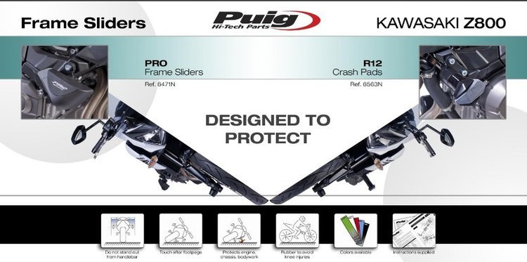 Wykonane z materiału bardzo odpornego na ścieranie, nie psują wyglądu motocykla, a dodatkowo zabezpieczają pojazd. Cena dotyczy dwóch crash padów i zestawu mocującego do danego motocykla.