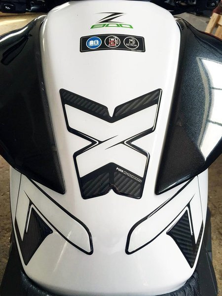 Dedykowany trzyczęściowy do motocykla tankpad - centralna główna część oraz dwie, dodatkowe boczne, zapewniają doskonałą ochronę baku. Zaprojektowany specjalnie pod dany model motocykla.