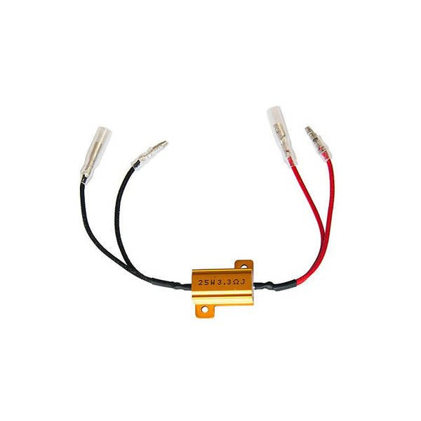 Rezystor to element montowany w instalacji elektrycznej motocykla w którym oryginalne żarówki mają moc 21W. Wpływa na poprawną częstotliwość pracy kierunkowskazów LED.