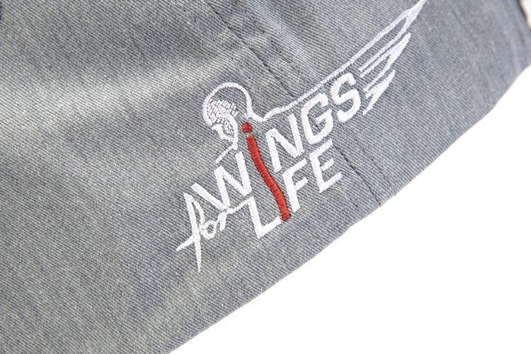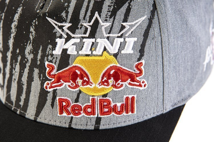 Czapka z dużym nadrukiem KINI Red Bull z przodu, Wings For Life i logo KTM z boku.