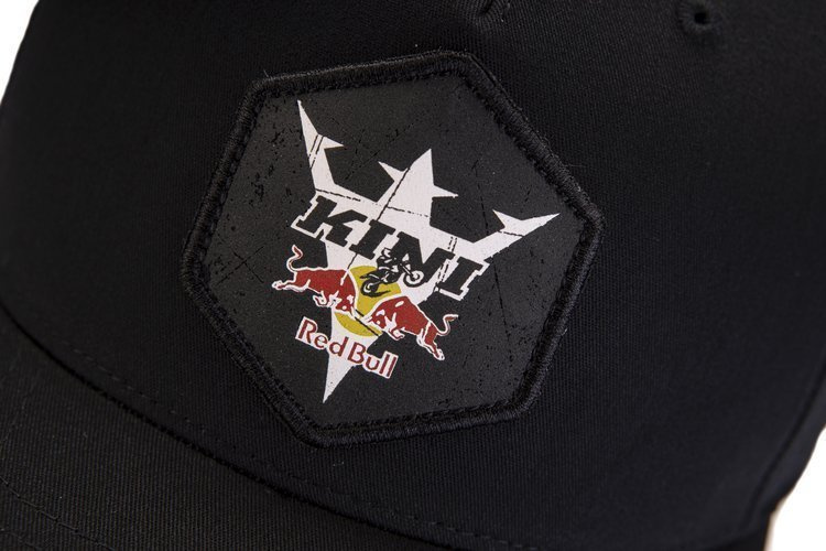 Czapka z dużym nadrukiem KINI Red Bull z przodu, Wings For Life i logo KTM z boku.