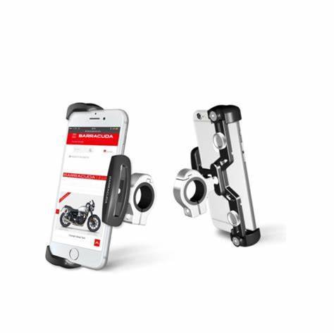 Ekskluzywny projekt firmy BARRACUDA, w całości opracowany z lekką konstrukcją i aluminiowym łożyskiem z obróbką CNC. Posiada wielokrotną regulację z przegubem dla lepszego pozycjonowania i lepszej ergonomii. Obsługuje telefony o przekątnej 4,7 cala (wersja typu I-PHONE 6) do 5,5 cala (wersja typu I-PHONE 6 PLUS), ma łatwy i szybki tryb mocowania i nie wymaga konstrukcji do nakładania na telefon. Posiada uniwersalne mocowanie kierownicy o średnicy od 22 mm do 25 mm. Dostępne również do mocowania skutera do wspornika lusterka wstecznego (do nabycia osobno).