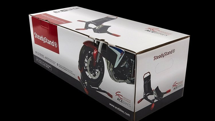 Dzięki Acebikes SteadyStand Twój motocykl jest mocno zakotwiczony w kilka sekund. Stojak SteadyStand nadaje się do opon o średnicy od 15 do 19 cali i szerokości od 90 do 130 mm.