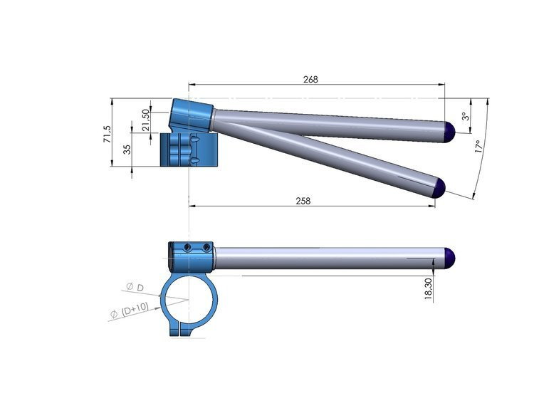 Kierownica motocyklowa wpinana Ø 45 mm podniesiona z regulowanym pochyleniem uchwytu, typ RAG