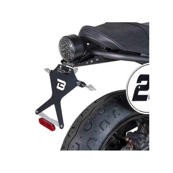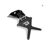 Odchylany uchwyt na tablicę rejestracyjną wykonany jest z anodowanego na czarno aluminium + przegub stalowy, co gwarantuje odporność na wibracje. Zestaw jest przeznaczony dla motocykli i zawiera wspornik mocujący i śruby. Montaż nie wymaga modyfikacji oryginalnych części. Oryginalne strzałki i oświetlenie tablicy rejestracyjnej nie są kompatybilne.