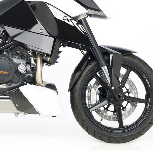 Przedłużenie przedniego błotnika zapewnia ochronę dolnej części motocykla - kolektorów układu wydechowego, owiewek i innych elementów - przed zabrudzeniami z przedniej opony.
