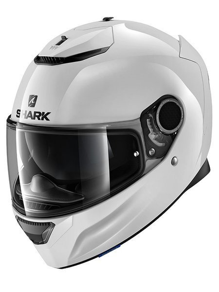Integralny kask SHARK SPARTAN to nowoczesny model stworzony dla wygody i komfortu jazdy. Kask jest cichy dzięki zastosowaniu kilku trików, podwójny spojler i tworzony przez niego kanał powietrzny poprawiają aerodynamikę i jednocześnie ułatwiają chłodzenie wnętrza kasku. Dodatkowo z boku zamontowano zaślepki mocowania wizjera z powierzchnią imitującą „rekinie łuski” dla zmniejszenia hałasu spowodowanego szumem powietrza. System autoseal dociska wizjer w trakcie jazdy co dodatkowo wygłusza kask, a jednocześnie chroni przed deszczem i zimnem. Pod szczęką znajduje się wysuwany podbródek osłaniający przed wiatrem. Z drugiej strony wbudowana wentylacja zapewnia sprawne chłodzenie dzięki dwóm otworom, w szczęce i w górnej części skorupy. Wyściółkę można zdemontować i prać.