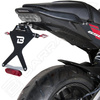 Wysokiej klasy mocowanie tablicy rejestracyjnej wykonane z aluminium anodowanego na kolor czarny posiada regulację pochylenia ze stali inox. Gotowy element do zamontowania, bez przeróbek oryginalnych części motocykla.