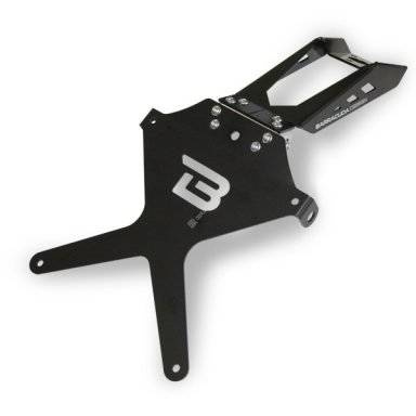 Wysokiej klasy mocowanie tablicy rejestracyjnej wykonane z aluminium anodowanego na kolor czarny posiada regulację pochylenia ze stali inox. Gotowy element do zamontowania, bez przeróbek oryginalnych części motocykla.