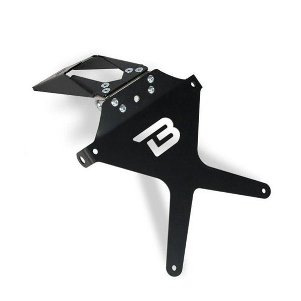 Wysokiej klasy mocowanie tablicy rejestracyjnej wykonane z aluminium anodowanego na kolor czarny posiada regulację pochylenia ze stali inox. Gotowy element do zamontowania, bez przeróbek oryginalnych części motocykla.