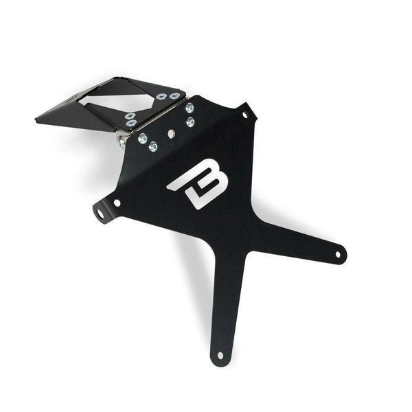 Wysokiej klasy mocowanie tablicy rejestracyjnej wykonane z aluminium anodowanego na kolor czarny posiada regulację pochylenia ze stali inox. Gotowy element do zamontowania, bez przeróbek oryginalnych części motocykla.