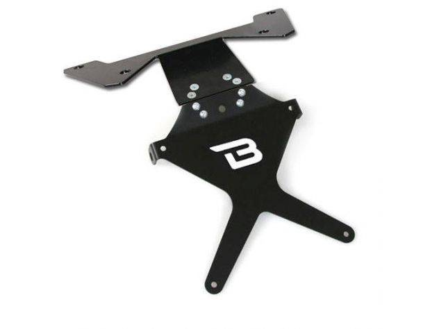 Wysokiej klasy mocowanie tablicy rejestracyjnej wykonane z aluminium anodowanego na kolor czarny posiada regulację pochylenia ze stali inox.