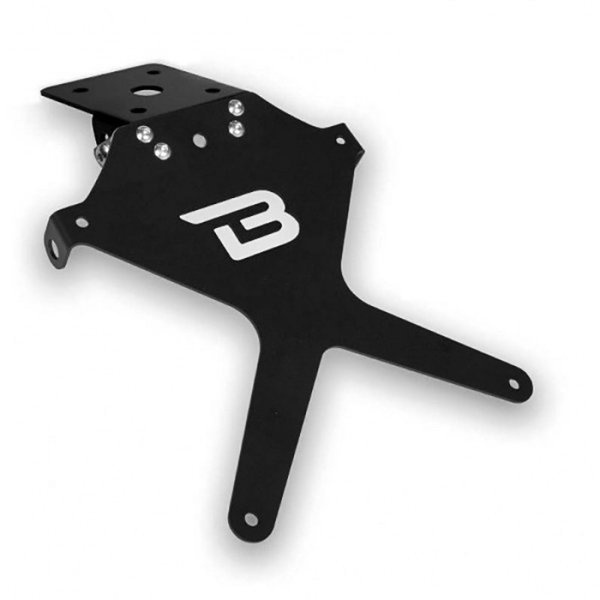 Wysokiej klasy mocowanie tablicy rejestracyjnej wykonane z aluminium anodowanego na kolor czarny posiada regulację pochylenia ze stali inox. Gotowy element do zamontowania, bez przeróbek oryginalnych części motocykla.