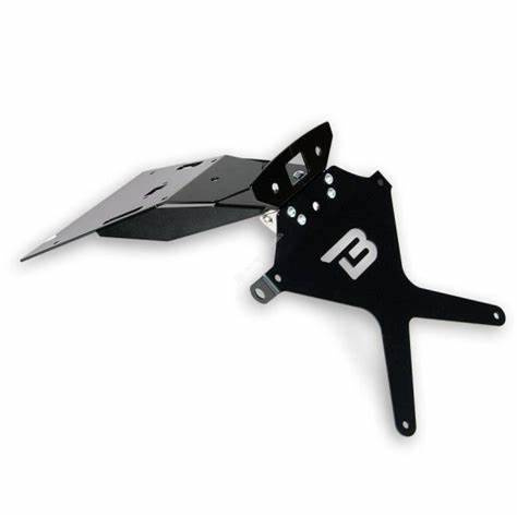 Wysokiej klasy mocowanie tablicy rejestracyjnej wykonane z aluminium anodowanego na kolor czarny posiada regulację pochylenia ze stali inox. Gotowy element do zamontowania, bez przeróbek oryginalnych części motocykla.