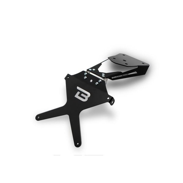 Wysokiej klasy mocowanie tablicy rejestracyjnej wykonane z aluminium anodowanego na kolor czarny posiada regulację pochylenia ze stali inox. Gotowy element do zamontowania, bez przeróbek oryginalnych części motocykla.