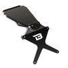 Wysokiej klasy mocowanie tablicy rejestracyjnej wykonane z aluminium anodowanego na kolor czarny posiada regulację pochylenia ze stali inox. Gotowy element do zamontowania, bez przeróbek oryginalnych części motocykla.