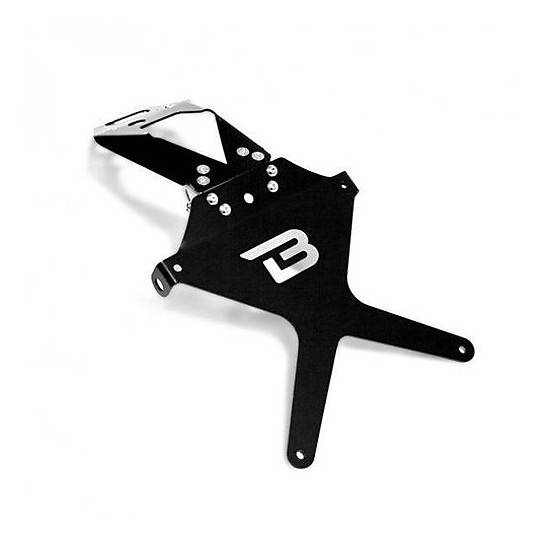 Wysokiej klasy mocowanie tablicy rejestracyjnej wykonane z aluminium anodowanego na kolor czarny posiada regulację pochylenia ze stali inox. Gotowy element do zamontowania, bez przeróbek oryginalnych części motocykla.