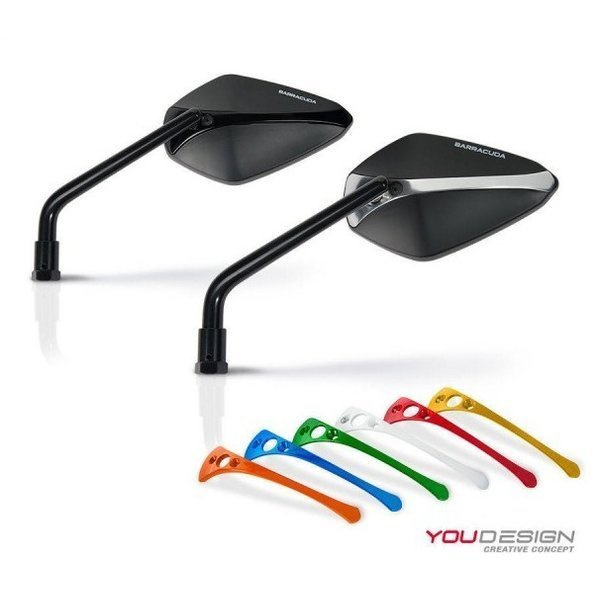 Lusterka A-Version nie posiadają homologacji. Wysokiej klasy uniwersalne lusterka dedykowane dla motocykli Street oraz Naked mocny i stabilny wspornik lusterka oraz obudowa z wytrzymałego tworzywa sztucznego o nazwie ABS. - lusterko prawe posiada prawy gwint o średnicy śruby 10mm. - lusterko lewe posiada prawy gwint o średnicy śruby 10mm. W niektórych modelach motocykli istnieje potrzeba zastosowania redukcji pozwalającej na montaż lusterka z prawym gwintem do mocowania z lewym gwintem.