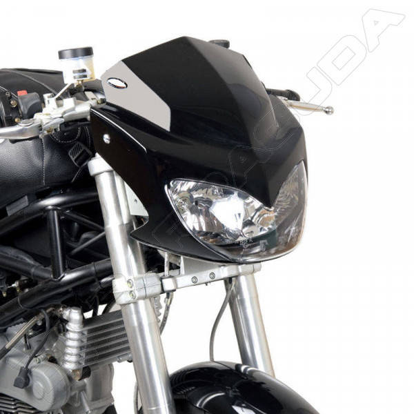 LAMPA POSIADA HOMOLOGACJĘ EUROPEJSKĄ. Wysokiej klasy uniwersalna przednia lampa do motocykli typu Street lub Naked. Wykonana z tworzywa ABS posiada dwie lampy na żarówki H8. Lampa jest montowana do goleni widelca mocnymi wspornikami.
