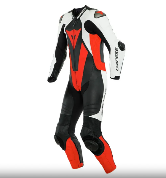 Kultowy skórzany kombinezon marki Dainese.