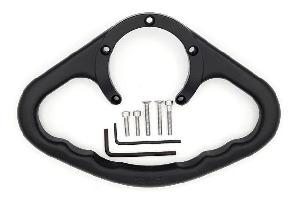 Wykonany z lekkiego aluminium uchwyt dla pasażera. Mocowany w miejsce śrub korka wlewu paliwa. W zestawie komplet dłuższych śrub.