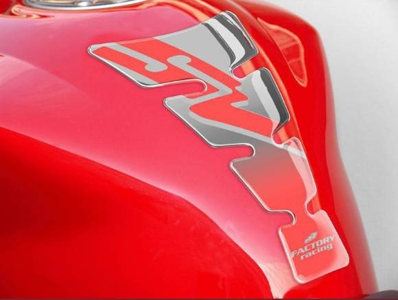 Posiada charakterystyczne logo motocykla. Skutecznie zabezpiecza lakier baku przed otarciami.