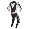 - Skórzany kombinezon wyścigowy zaprojektowany z dopasowanym do ciała krojem wyścigowym i wstępnie zakrzywionymi rękawami, nogawkami i korpusem dla optymalnych osiągów podczas jazdy.