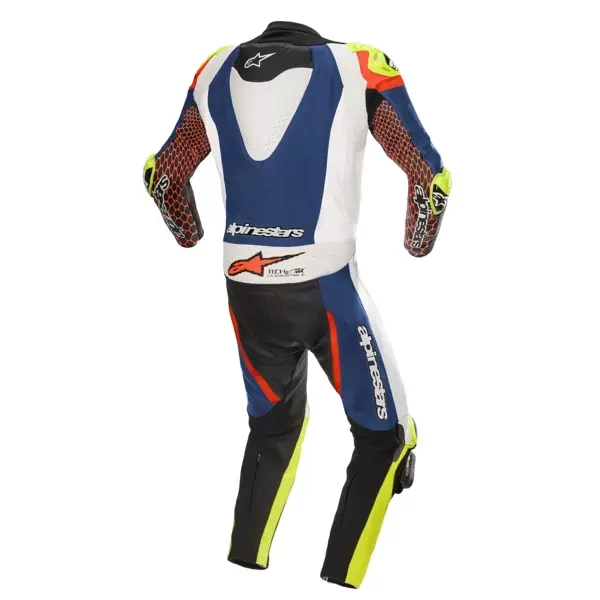 Wyposażony w najnowocześniejsze technologie ochrony zewnętrznej, kombinezon skórzany GP Tech V3 jest wykonany z najwyższej jakości skóry kangura i bydlęcej, co zapewnia niezrównaną odporność na ścieranie i rozdarcie. W pełni zoptymalizowany do użytku z lub bez Tech-Air®, wiodącego na świecie elektronicznego systemu bezpieczeństwa poduszki powietrznej Alpinestars, GP Tech V3 zawiera aramidowe i akordeonowe panele rozciągliwe, które zapewniają anatomicznie wyprofilowane dopasowanie wyścigowe. Kombinezon posiada również wiodącą w swojej klasie ochronę wewnętrzną, a także wzmocnione szwy i strategiczne panele ze streczu, zapewniające najwyższy komfort jazdy, bezpieczeństwo i dopasowanie