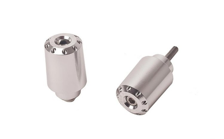 Ilustracja poglądowa. Fotografia prezentuje wygląd końcówek od strony zewnętrznej. Konkretne modele mogą się różnić mocowaniem (długość, rozmiar śruby, sposób wkręcania w kierownicę) - zawsze jest ono odpowiednie do motocykla.