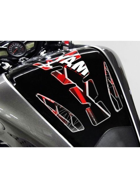 Tankpady PUIG Wings składają się z trzech elementów - głównego tankpada oraz także dwóch dodatkowych części, do przyklejenia bardziej po bokach baku.