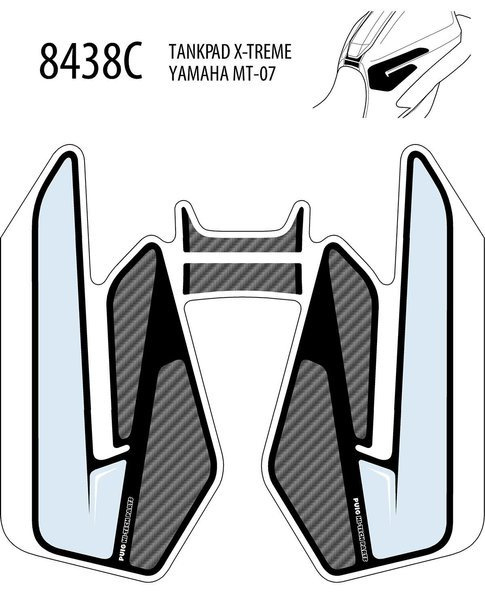 Dedykowany trzyczęściowy do motocykla tankpad - centralna główna część oraz dwie, dodatkowe boczne, zapewniają doskonałą ochronę baku. Zaprojektowany specjalnie pod dany model motocykla.