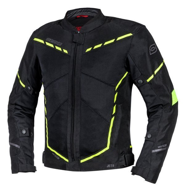 Letnia, krótka kurtka motocyklowa – Ozone JET II. Wykonana z użyciem licznych paneli steel mesh zapewnia maksymalną wentylację. W zestawie z wypinaną, wodoodporną membraną – w razie zmiany warunków panujących na drodze – ochroni motocyklistę przed deszczem. Na łokciach i barkach znajdują się ochraniacze (CE Level 1) gwarantujące bezpieczeństwo. Razem ze spodniami JET II kurtka tworzy niezrównany zestaw na upalne dni.