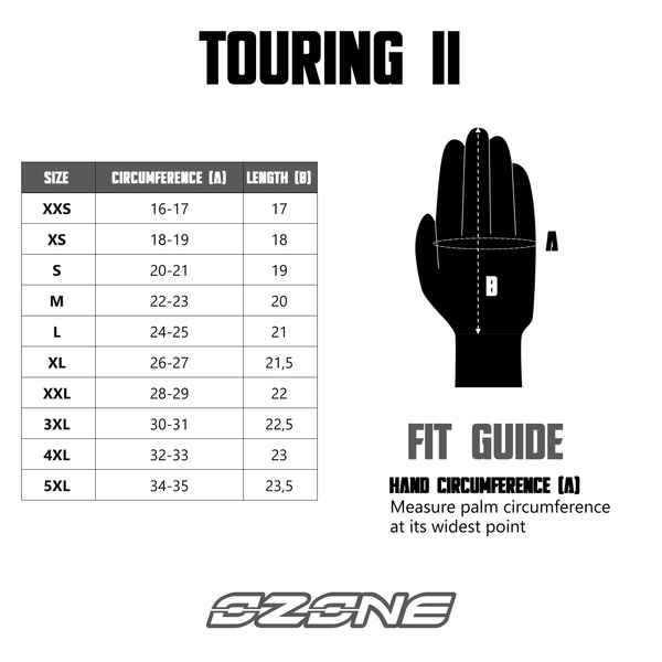 Motocyklowe turystyczne rękawice skórzane z częściową perforacją zewnętrznej części dłoni i pełną palców. Na kostkach mają panele z pianki absorbującej uderzenia. Wnętrze uszyte z podwójnej warstwy materiału. Mają elastyczne elementy i paski regulacyjne. W rękawicach można obsługiwać ekrany dotykowe.