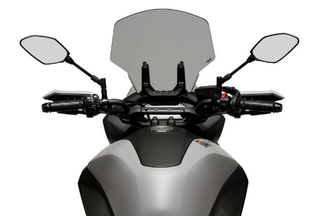 Dodatkowe przedłużenie w turystycznej szybie PUIG zapewnia doskonałą ochronę przed wiatrem nawet przy długich podróżach.