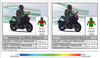 Poprawia ochronęprzed wiatrem na motocyklu o 38,0% - bez straty aerodynamiki (współczynnika cX), poprzez zmniejszenie siły działającej na kask z 4,06 g/cm2 do 3,17 g/cm2 oraz siły działającej na ciało kierowcy z 1,14 g/cm2 do 0,6 g/cm2. | Łączne ciśnienie rozproszone przez szybę PUIG jest równoważne 1,9 kg. Test przeprowadzony w wirtualnym tunelu aerodynamicznym PUIG. Środowisko testowe: prędkość 150 km/h, wzrost kierowcy 180 cm, pozycja standardowa, temperatura 20 stopni C, bez wiatru. Schemat znajduje się w galerii przedmiotu.